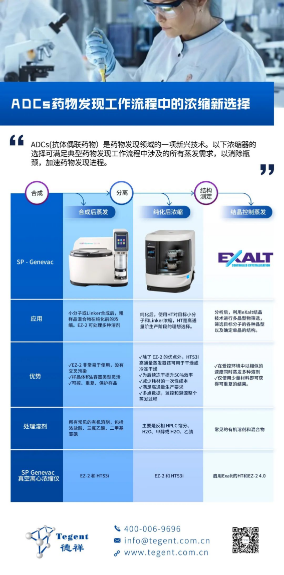 总之,ADC抗体偶联药物研发壁垒很高。但是,Genevac离心浓缩设备可以满足连接子和小分子工作流程中的浓缩需求。