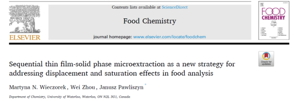 [2]Martyna N. Wieczorek , Wei Zhou , Janusz Pawliszyn.Sequential thin film-solid phase microextraction as a new strategy for addressing displacement and saturation effects in food analysis. Doi:https://doi.org/10.1016/j.foodchem.2022.133038