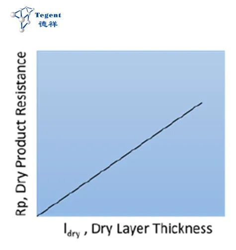 Rp一般来说会随着干燥层的厚度(Idry)的增加而增大,如果干燥层组分和结构均一,二者呈线性的关系,如下: