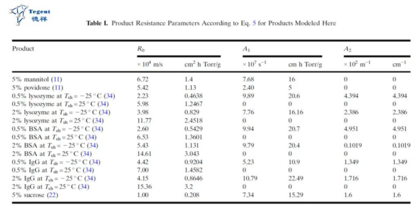 在主干燥阶段,压力降低促使冰升华(溶剂通常来说是水),Rp是主干燥阶段水蒸气升华的传质阻力,Rp会影响到整个主干燥需要的时间以及主干燥阶段产品的温度曲线。