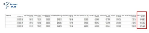 通过压力升回归方程式及传热传质理论方程,软件可自动计算出升华阻力RpMTM的方法简便快捷,可智能获得整个批次的实时阻力数据信息(图3),但是由于受到隔离阀的限制,目前主要用于中试及实验室冻干机,进行产品工艺的开发,优化以及设计空间的构建。