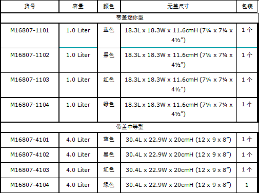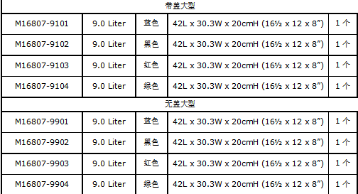 ? 有迷你的1.0升、中等的4.0升和最大的9.0升尺寸,每种尺寸有四种颜色:蓝色、黑色、红色和绿色